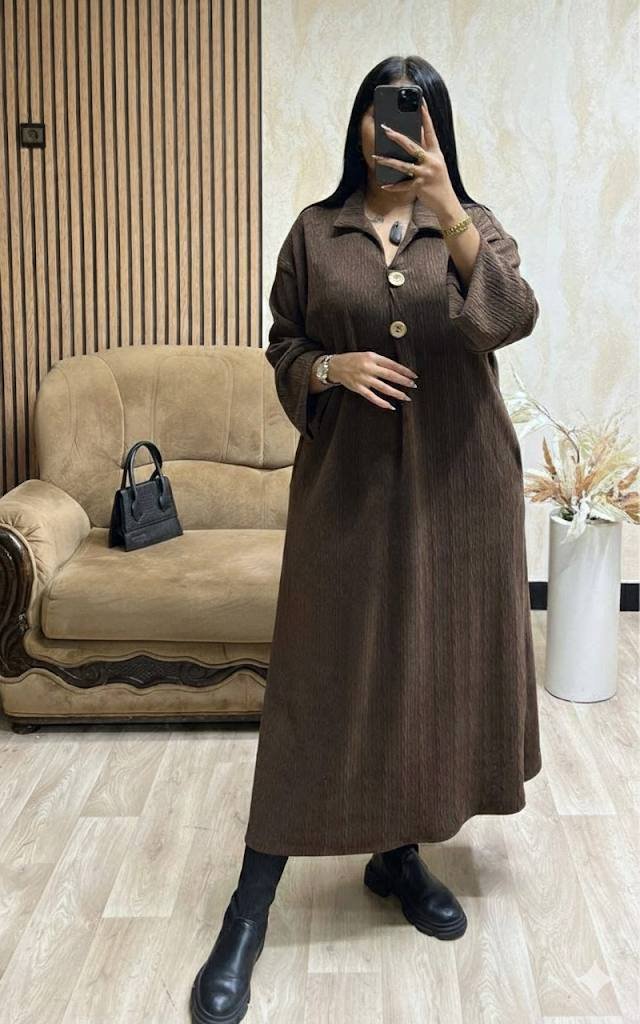 Vestido con botones de pana perfecto para este invierno